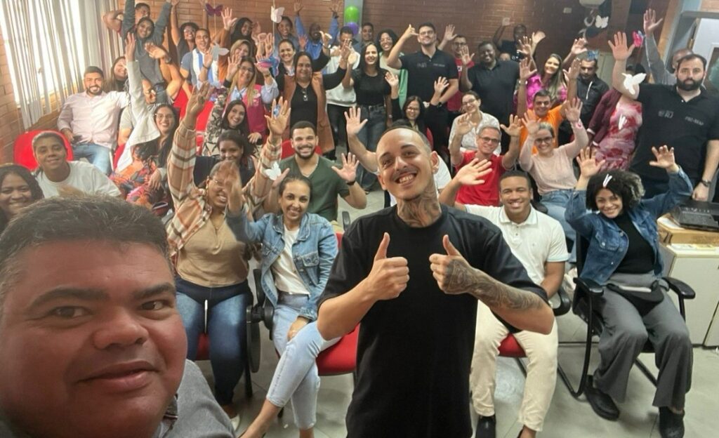 A Fundação Santa Cabrini encerrou sua programação de aniversário de 48 anos, nesta sexta-feira (26), com um evento repleto de risadas e inspiração. O ponto alto do dia foi a apresentação do humorista João Estrella, que retornou à instituição para divertir e motivar colaboradores e parceiros com seu stand-up.