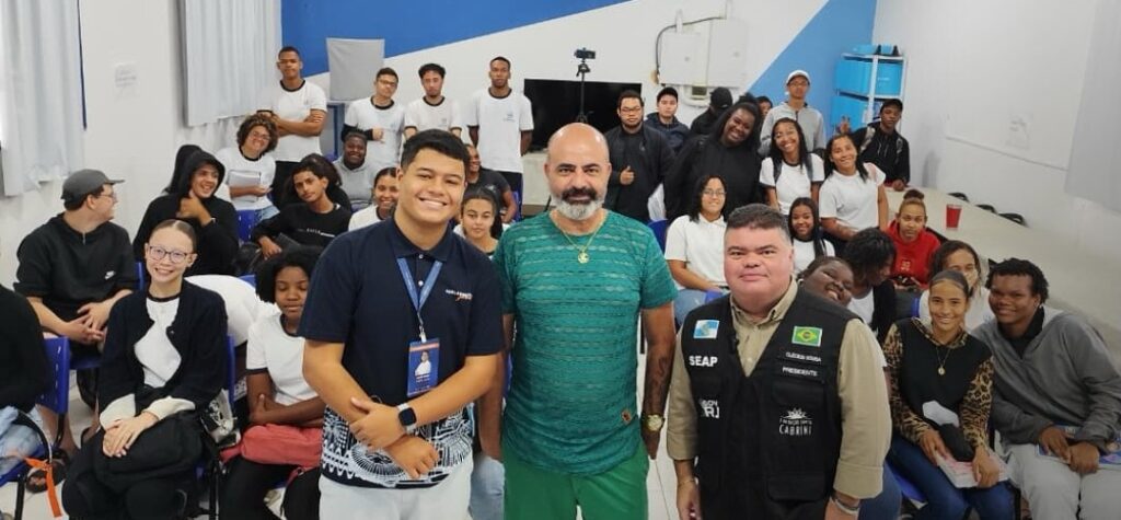 Presidente da Fundação Santa Cabrini apresenta trabalho da instituição a alunos do Colégio Estadual Almir Peçanha, em Três Rios